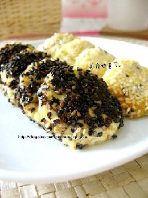 豆腐半块,香菇2个,莴笋,白芝麻适量,黑芝麻适量,盐,胡椒粉,干淀粉