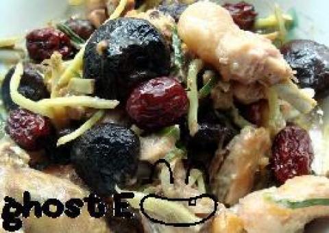 麻油,鸡,香菇,红枣,盐,料酒,鸡精,酱油,糖,葱姜丝,湿淀粉