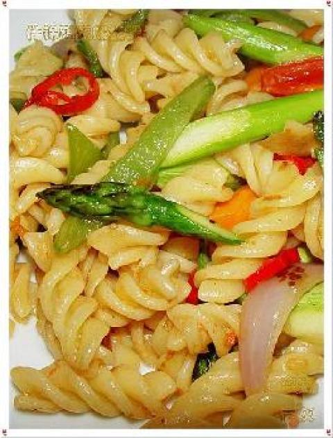 6.色彩缤纷,营养健康的什锦蔬菜炒螺丝粉就做好了。