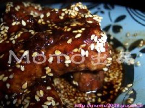 排骨1条,芝麻适量,盐适量,生粉适量,五香粉适量,料酒适量,生抽适量,生油适量,冰糖适量,蚝油适量