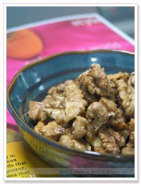 3.把做好的蜂蜜核桃凉凉再放在一个玻璃或是纸的罐子了,最好不要放在塑料容器里保存。