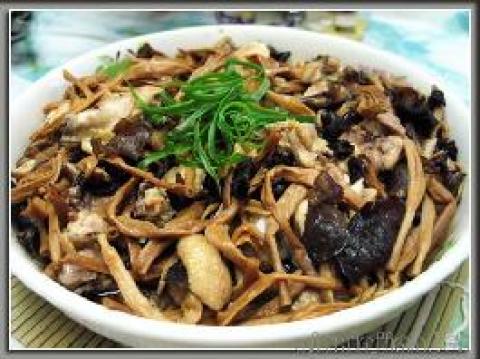 第一种:美食美味的云耳黄花菜蒸鸡做法