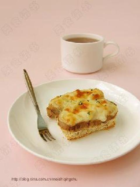 做这道菜的时候,吐司也可以换成其他原味面包,随自己的喜好选择就行,但最好使用较软的面包,口感会比较好,烤后才不会变硬。 起司最好不要用那种光明的奶酪片,最好选择皮萨起司丝,如果能买到艾曼特尔起司(emmental cheese)就最好了。 做这道菜还应注意,烤的时间不要过长过久,否则面包会变干,肉会变老。