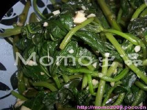 番薯叶1斤,蒜末适量,盐适量,生抽适量