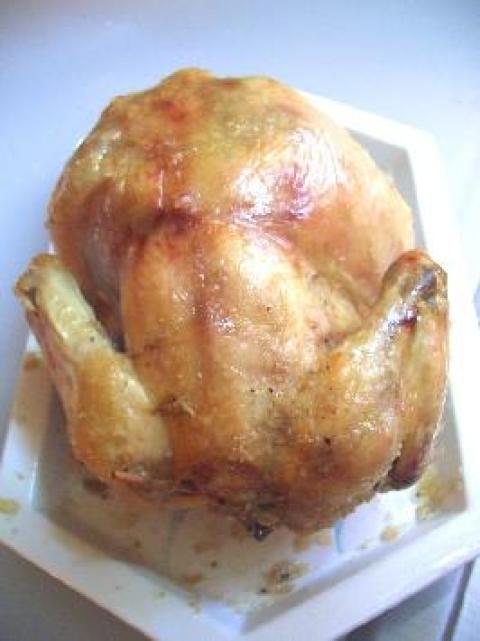 因为腿肉厚,较难熟,腿肉熟是关键。撕开大腿看看。好嫩好爽,美美的一餐哦。 偶不是专业人士,在烹调理论上说不出个大理儿,但给点点温馨提示: 一、鸡只不要过大,一斤左右足够,在广州,一般饭馆不用大鸡做盐焗鸡或白斩鸡。 二、肚子里的填充物最好不要遇热就发大水的,因为如果发水,会渗透纸,这样盐也就做溶化,鸡会变得很咸。 三、温度没有绝对准确的,要看鸡只的大小,而且每家的烤箱有温度区别,其实,说来说去,就是让鸡烤熟而不要把鸡烤得太老就行了。