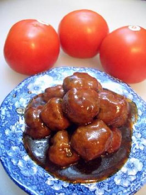 三、倒入肉丸,用锅铲将汁浇在肉丸上,让肉丸均匀地粘上汁即可上碟。