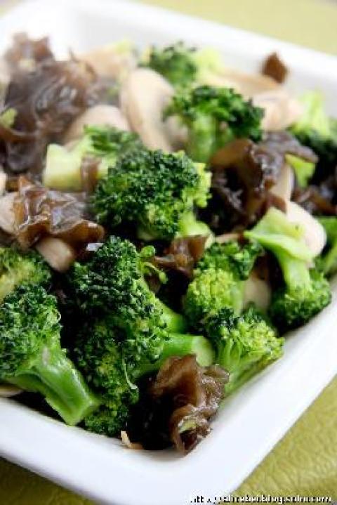 嘱咐几句: 1、黑木耳最好用冷水泡发,这样营养不易流失;水中还可以加些淀粉,搅拌一下便于沉淀木耳缝隙里的脏物; 2、口蘑用新鲜的最好,袋装的也可,超市里一般都有卖,四块左右一袋; 3、西兰花如果炒前不焯的话,那就在西兰花下锅之后倒一点水,盖锅闷半分钟,待西兰花变色即可。