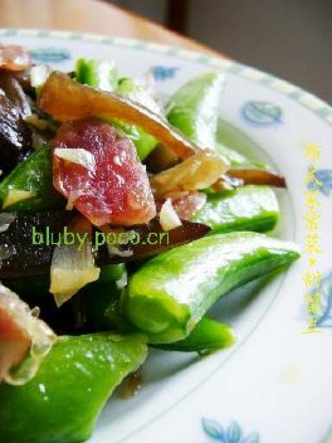 1.蜜豆去头尾及侧皮,掰成两半,洗净,木耳切丝(手撕更佳),蒜籽切成蒜粒,香肠切片;