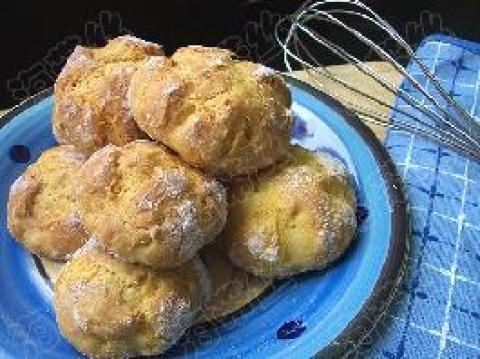 南瓜泥100克,中筋面粉200克,泡打粉1小匙,牛奶30毫升,糖1.5大匙,盐0.5小匙,色拉油2小匙,全蛋液60克,小苏打0.5小匙,面粉20克