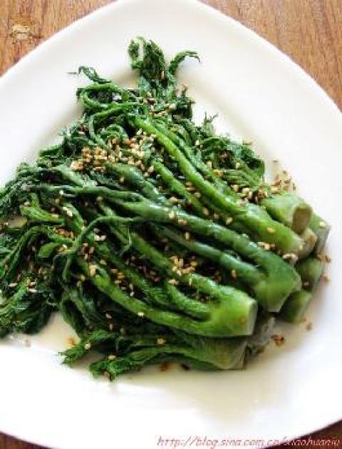 刺嫩牙300克,芝麻适量,盐0.25小匙,鸡精0.5小匙,麻油3小匙