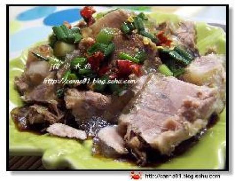4.我刀功不好,没本事把它切成片又不碎,索性就弄碎了,浇上糖,盐,生抽,醋,辣椒碎,葱花拌成的料,味道很不错!