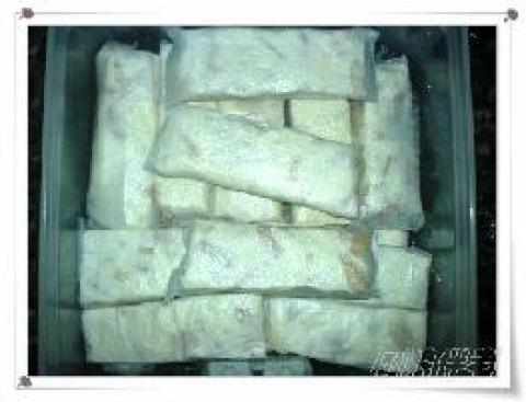 3.稍凉后放保鲜纸上,擀成方块,切一小块,包上威化纸防粘就ok了。
