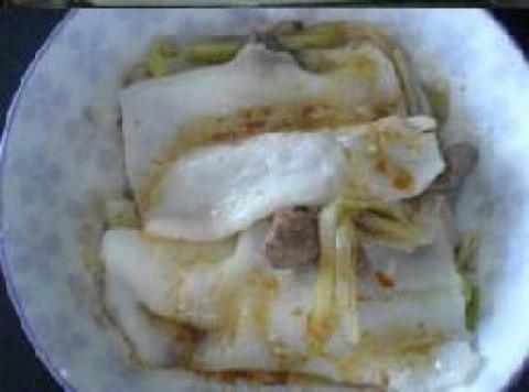 1.材料:粘米粉 50克,生粉 10克, 澄面 5克, 水 150克, 油 12克 猪肝 适量 韭黄 适量 (馅料根据各人的喜好放,可以是肉片、鱼片、虾仁、叉烧,反正喜欢什么就放什么)