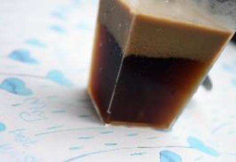 2.加入用凉水泡软的吉利丁片搅拌均匀,装入自己喜欢的容器,晾凉后放入冰箱冷藏,过一阵就变成咖啡冻了。