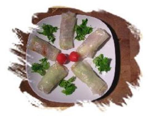 1.把越南薄饼用温水泡软,泡到能卷的地步就行了 ,不能时间太长,要不就该烂了,呵呵。
