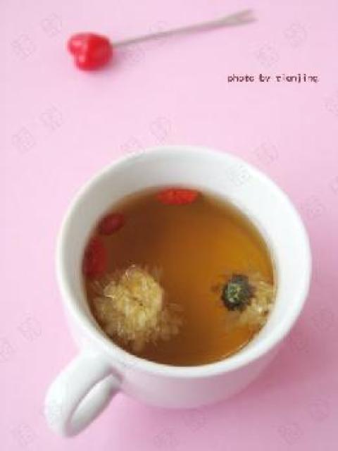 炒后的决明子10克,枸杞1小匙,菊花5个