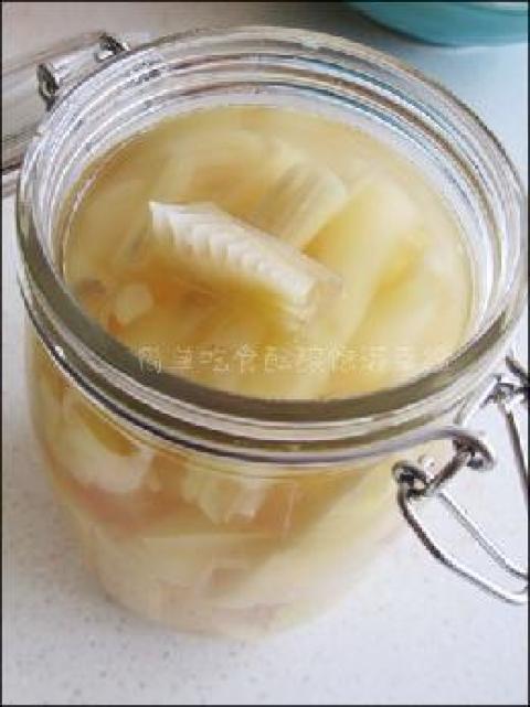 6.倒入晾凉的开水,密封好,等待几天就可以吃到天然酸笋了。