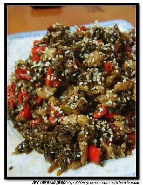 4.碎米芽菜非常咸,加了一大勺糖来调整咸味。