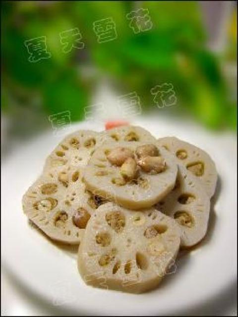 2、将鲜藕洗净,切片,与花生、大枣一同入沙锅中蒸半小时即可,每日作早餐食用。