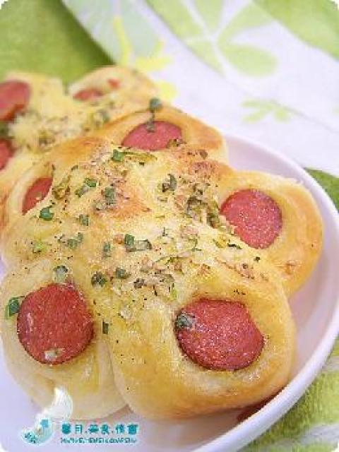 相关菜谱名称推荐:烤肠梅花包,烤肠梅花包,香葱肠仔梅花包,蒜蓉烤肠+木耳