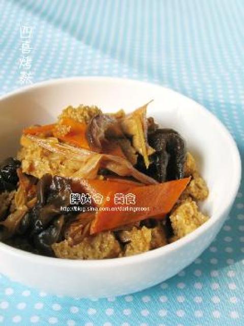烤麸,黑木耳,黄花菜,香菇,胡萝卜,胡萝卜,姜,八角,生抽,老抽,白糖,芝麻油