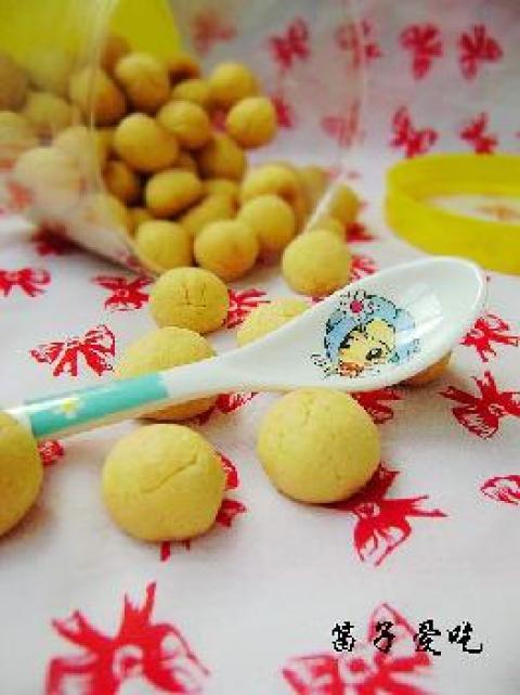 黄油80g,糖粉35g,蛋黄2个,低粉90g,玉米粉40g,吉士粉5克,奶粉15g,无铝泡打粉1.5小勺