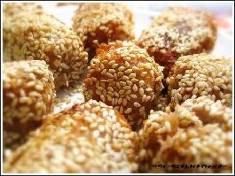 3.热油锅,烧至150℃,再将作法2的洋芋球慢慢放入,炸至表面呈金黄色即可捞起沥干油脂。