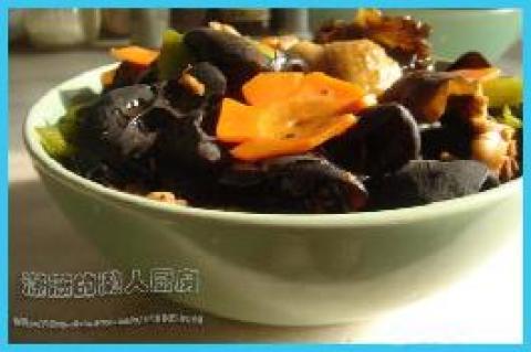 第一种:美食美味的配胡萝卜花的木耳鸡块做法