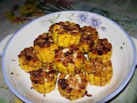甜玉米,孜然,干辣椒面,盐,鸡精,蒸鱼油