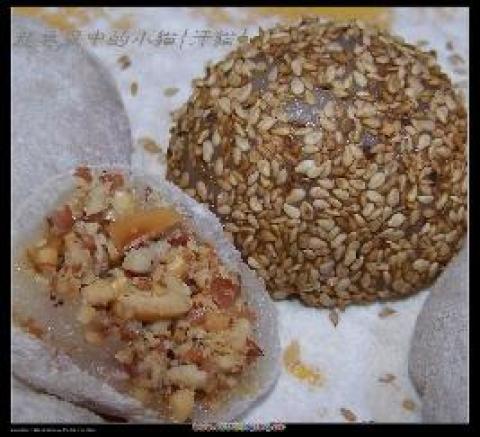 3.外面粘上熟芝麻,或是熟糯米粉。