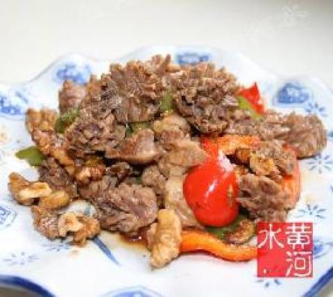 将鸡肉切成1厘水见方的丁。枸杞子洗净。核桃仁用开水泡后,去皮。生姜、葱、蒜洗净后,均切成指甲片。鸡蛋去黄,留清于碗内。再将鸡丁用食盐、黄酒、味精、胡椒粉、鸡蛋清、水淀粉调匀成浆备用。用食盐、味精、白糖、胡椒粉、鸡汤、芝麻油、水淀粉兑成滋汁备用。将去皮的核桃仁用温油炸透,兑入枸杞,即起锅沥油。锅烧热注入猪油,待油五成熟时,投入鸡丁,快速滑透,锅离火,鸡丁倒入漏勺内,沥去油。锅再置火上,放熟油50克,投入姜、葱、蒜稍煸,再投入鸡丁,接着倒入滋汁,速炒,随即投入核桃仁和枸杞子炒匀即成。