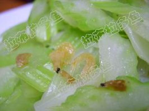 2.海米放入水中焯1分钟后过凉,然后与西芹拌在一起,加入适量的盐与香油。