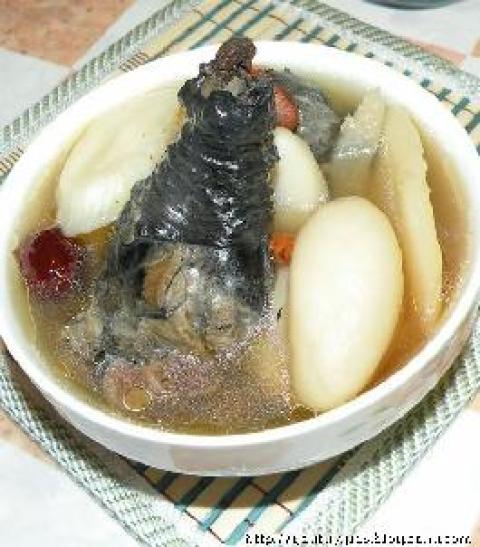 2.与其它配料一起入锅,文火煮两小时,用盐、鸡精调味就可以了,味道清润鲜甜。