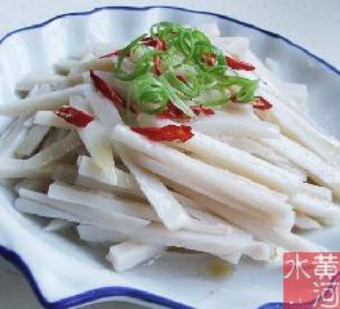 3.莲条加盐、白醋拌匀装盘