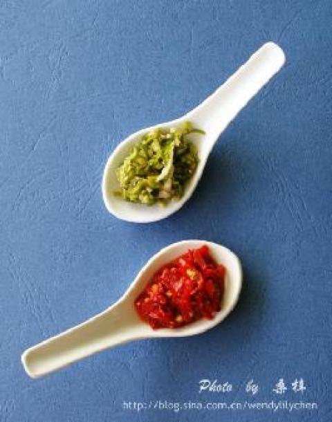 1、剁椒和野山椒都有咸味,因此腌制鱼头时放一点点盐就可以了。