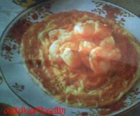 4)烧热4汤匙油,倒入蛋液,在半凝固状态时下虾仁,烘至刚熟即成。