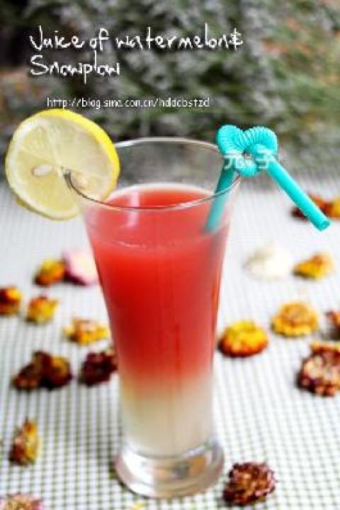 1,西瓜+两勺凉开水用料理机最高档打30秒,关掉静置30秒再中速打10秒.目的在于等残渣沉淀后再次打碎,增加口感的细腻程度 2,一定要喝珍珠奶茶的那种粗吸管,当然也可以用针桶对着细吸管往里注射,8过本人对第二种情况预计不足,后果自负 3,此款果汁乃纯天然制品,味道超棒,8过这两种水果都为凉性水果喝多了,除了有可能会浪费家里的厕纸,基本没有任何毒副作用.如侵占了家里的厕所资源本人概不负责,特此公告(我又把自己成功的择出去了,o耶~~~~~~~~)