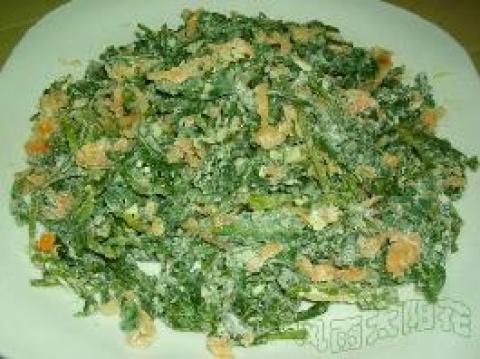 空心菜叶,胡萝卜,面粉,五香粉,蒜溶,盐,香油