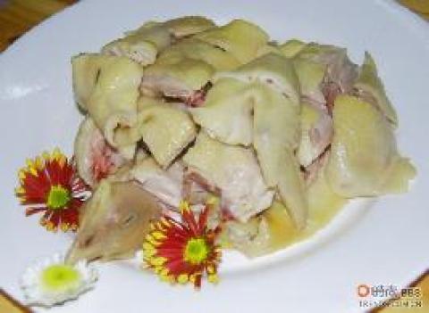 6.鲜美的白切鸡就完成了,当然七分鸡味,三分酱味,你可以选用不同的酱料沾酱.嫩滑的白切鸡的最高境介就是,骨中带血,鸡肉鲜嫩.因为鸡肉的蛋白质的特殊性,过熟的鸡肉会"鞋".但是现在又有xx病毒,唉烦