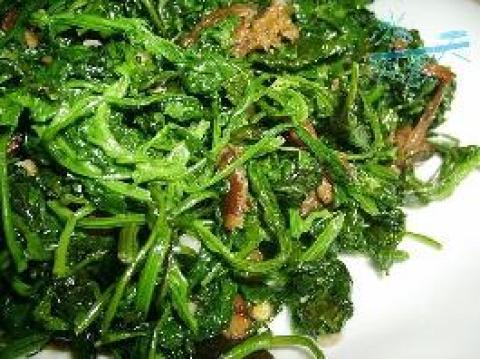 7.最后倒入灰汗菜翻炒1~2分钟,并加盐、鸡精调味即可。