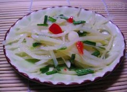 相关菜谱名称推荐:剁椒土豆丝,剁椒土豆丝,剁椒土豆片,尖椒土豆丝