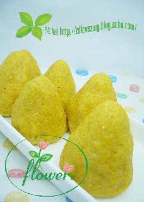 玉米粉800克,黄豆粉200克,苏打粉5克,糖桂花(干)10克,砂糖适量。
