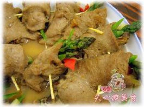 7.正腌制好的牛肉片上码上芦笋和三丝