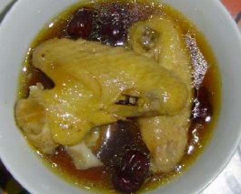 净母鸡1只(重约1250克),桂圆肉15克,荔枝肉15克,黑枣15克,莲子肉15克,构杞子15克,冰糖30克,葱10克,生姜5克,精盐、黄酒、胡椒粉各适量。