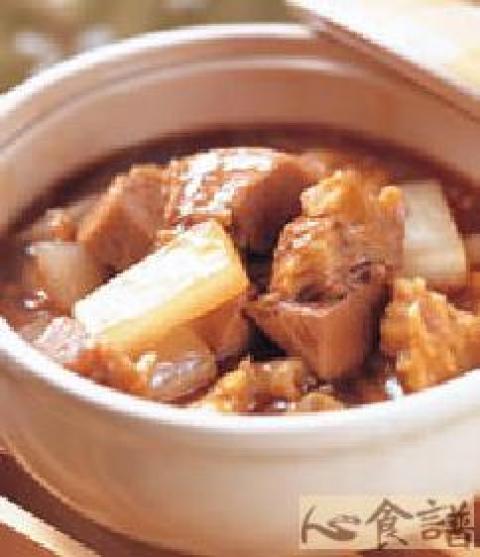 3.炒锅中入油烧热,放入姜末、蒜末、甜面酱以大火爆炒2分钟,加入作法1的牛腩块,转小火炒3分钟,再加入其余调味料,以小火煮1小时,最后加入白萝卜转中火煮半小时即完成。