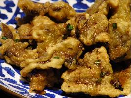 3、肚片挂匀糊,下入五成热油中炸至皮酥时捞出。