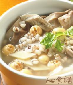 材料:,猪肚1付,薏仁3两,芡实2两,茯苓1两,淮山2两,莲子2两