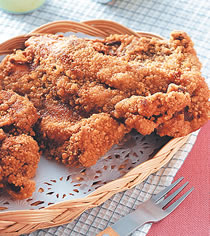 6.热一锅油至180℃,放入作法5的鸡排,炸约2分钟至表面金黄起锅沥油,最后撒上胡椒盐即可食用。