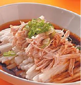 1.鸡胸肉洗净,放入滚沸的水中烫熟后剥丝备用。