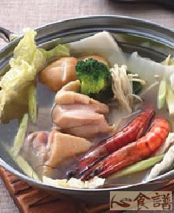 锅底:3根,柠檬叶6片,虾米10公克,鸡高汤5000cc,火锅配料:适量,鸡肉适量,青花菜适量,高丽菜适量,香菇适量